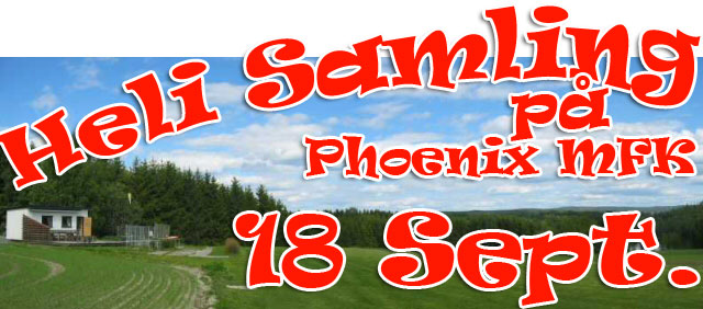 ID:	966491Vi inviterer herved alle helipiloter og andre skuelystne til helisamling på Phoenix RC Club sin stripe den 18 september. Søndag 19 september er reservedag dersom været krangler. Vi satser på en høyst uformell samling hvor klubbens grill blir stilt til disposisjon og som kan brukes av de som måtte ønske det. Det blir også muligens en liten artig konkurranse eller to om vi får noen påmeldte.
