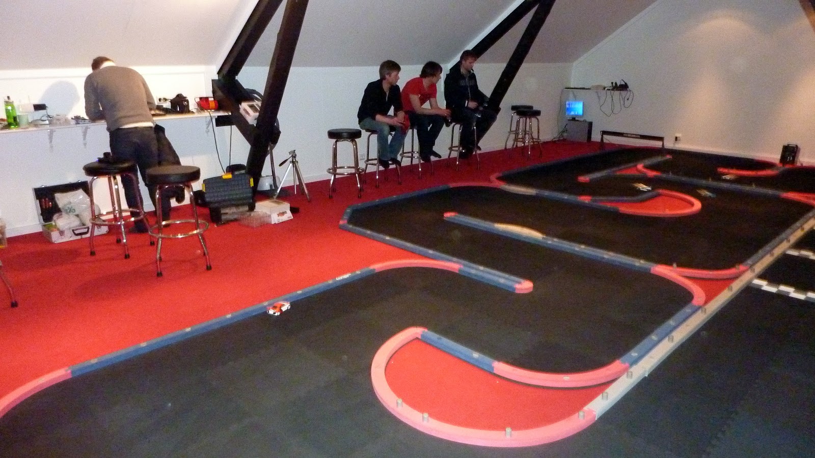 Undertegnede hadde noen runder inne fra uttesting av layouten, og klarte etter en stund å finne grep i bilen. Det går relativ fort, men det er moro å se at konkurransen tilspisser seg. Nivået er økende hos alle sammen og det er tøffere og tøffere å holde unna. Støttepilarene på langsida fikk seg en trøkk, når bilen i toppfart huka tak i et vant og forsvant en halvmeter opp i lufta å traff stolpen med en herlig knuselyd.