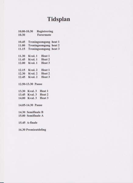 Tidsplan for Klubbløpet. Merk at registreringen begynner kl.10.00. Da bør bil og utstyr være utpakket klart, hvis vi skal klare og holde