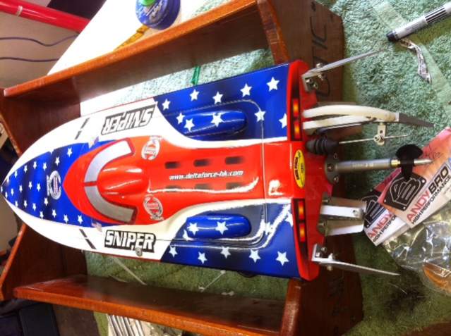 Båten har ikke motor, men tror resten ligger oppi der. Den har ikke vært kjørt før.