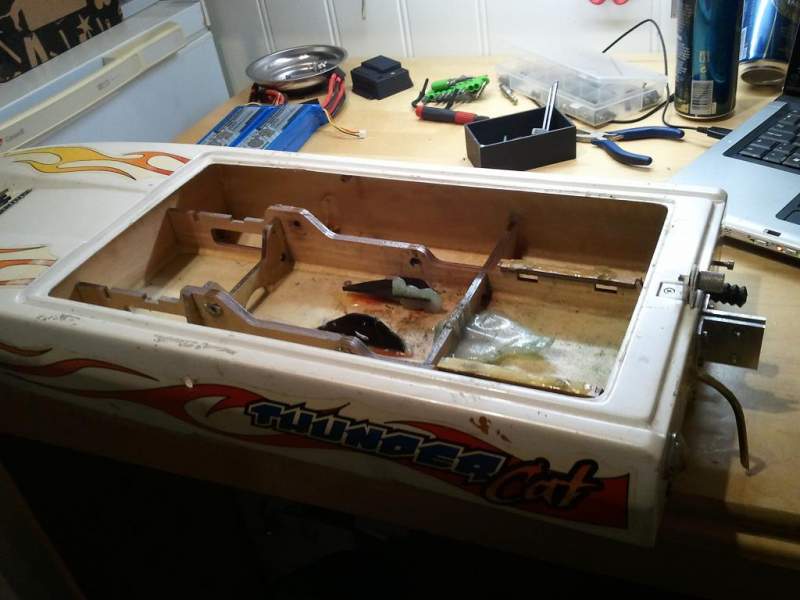 Eg er altså heilt fersk på rc båt. Fekk et skrog av ein kamerat i går, som han ikkje hadde bruk for. Det er ein Thundercat 31, sikkert folk som kjenner til den. Opprinnelig ein nitrobåt, men eg trur eg vil bygge den om til børsteløs.