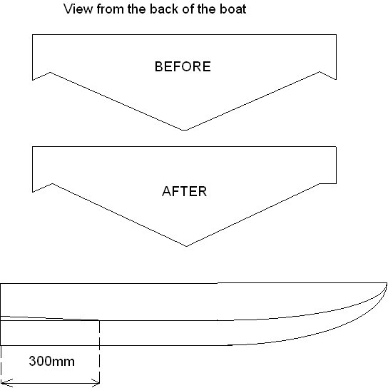 I have a good mod for the Sigma V2 which I gave to Ken. This will cure any oversteer which can be a problem. Remove the material with 60 or 80 grit production paper(dry paper) on a sanding block. It does not have to be exact, just remove or reduce the angle of the outside rail (chine rail) to the approximate shape on the drawing. There will be plenty of epoxy at this point and so the hull will not be weakened. Sorry for writing in English. If I use google the google translator for english to norwegian then I think only a computer could understand it!