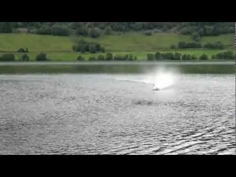 Her er en liten film fra dagens kjøring med hydro.Dette er vell prøveturtur nr. 10.Sist gang ble det litt trøbbel med rorservo,så jeg har oppgradert hele radioboksen og montert Futaba BLS 152. på roret,og da ble det sving på saken.