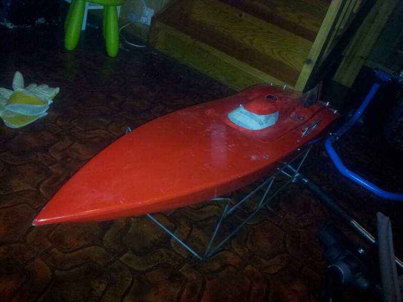 Er i gang med sparkling og pussing nå, før lakkering. Blir Kawasaki grønn. Stod et hjemmelaget ror på, og en strut. Ellers manglet det meste. Har bestillt aksling, propell osv. fra Nilsen, men ikke fått svar enda... Båten kom fra Stord nå, så da er det nok gamlebåten din.