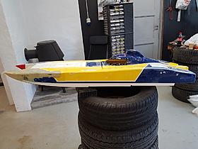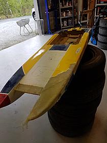 Da båten kom i posten viste det seg at båten har vært skikkelig kræsjet, og var store skader på den, men bestemte meg for å gjøre et forsøk. Legger ved noen bilder slik at interesserte kan ta en titt.