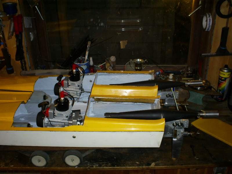 Tenkte jeg skulle legge ut båt prosjektet mitt...som dere sikkert ser så er den ikke bygd ferdig på noen uker,men skal bli spennende og se hvordan dette funker... sto 2 O.S MAX 81, 13.7 ccm i denne før...har disse motorene om noen trenger noen billige motorer som funker greit...