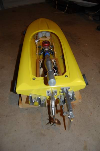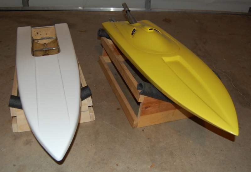Jeg kjøpte den hvite båten, en Speedmaster 45 mono, ARTR og slaktet den. Jeg satte mesteparten av utstyret over i DF'n.