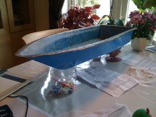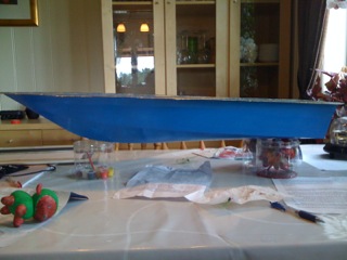 Skroget har en lengde på 88 cm har en bredde på 24 cm og er relativt parallelt dera akter og 50 cm forover. - se bilder.