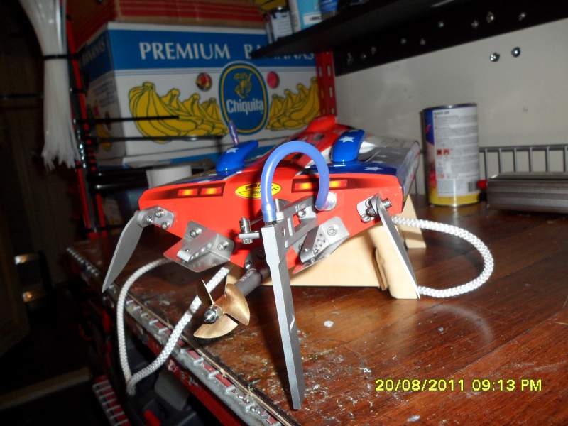 tja, men har alle delene til den klart allerede og er godt på vei til å få den på vannet, det oppsettet jeg skal bruke vet jeg at fungerer ufatteligt bra, hadde samme oppsett i en v-24 fra dragon hobby og den gikk helt rått, hardware på denna var ufattelig bra den å, alt er eloksert alu så den blir definitift værende som den er