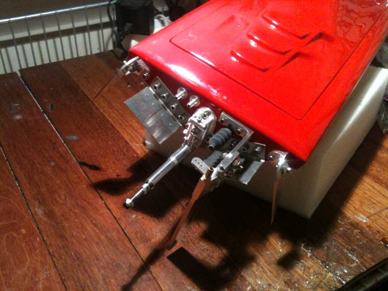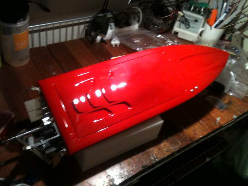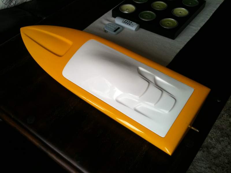 blir hvertfall 540 size motor og ca 200amp esc, 3/16" drivlinje er på vei samt trimtabs og turnfins og nytt ror osv, mest sannsynlig blir den lakkert samme farge som Delta caten jeg holder på med