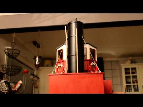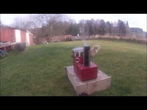 Den kostet kr. 350.- pluss kr. 80.- i frakt. Jeg hadde noe røykvæske liggende som jeg testet med, ble litt skuffet helt til jeg monterte det i pipa til denne båten, som er 75mm i diameter. Blandet også inn litt matolje, men da måtte jeg gå utendørs, for det lukta gatekjøkken i hele huset. Ble bedre røyk da, så jeg kommer til å teste litt forskjellige blandinger. Har hørt at babyolje skal ryke bra. Tanken i røykgeneratoren er på 60 ml. som skal holde i 60-75 minutter.