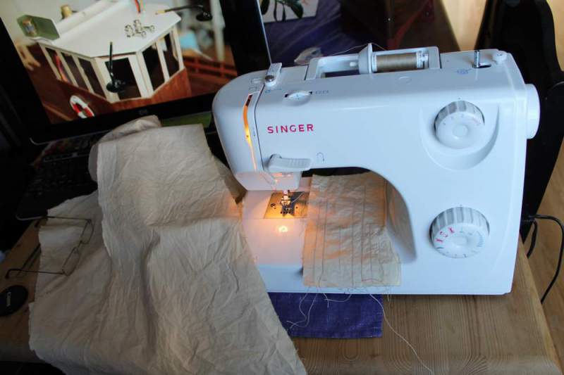Da er det bare å sette i gang å sy. Ferdig grovkuttet og farget (med kaffe) dunlerret