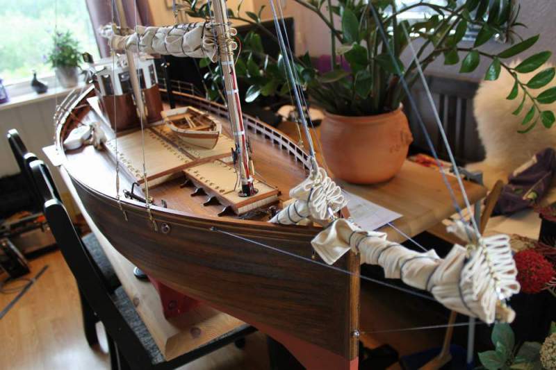 Da var de 2 siste seilene på plass, for øyeblikket nede og godt pakket.