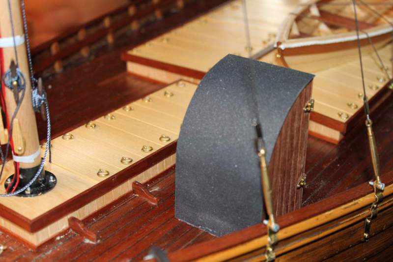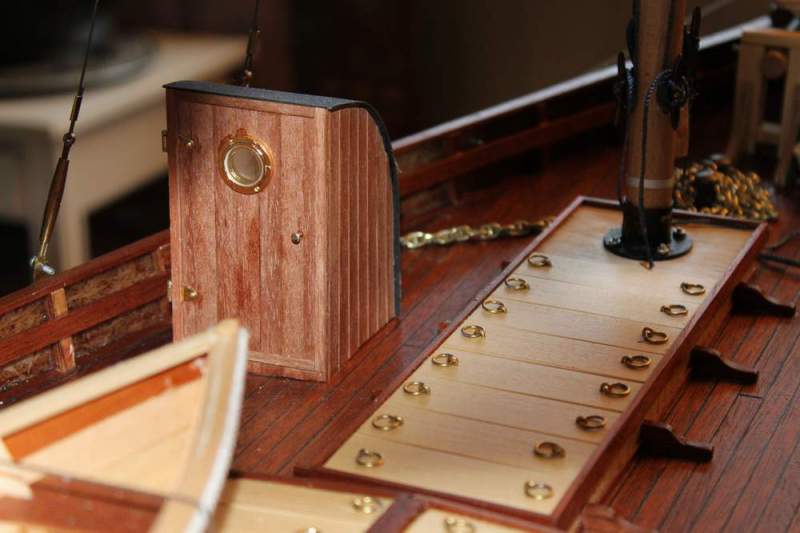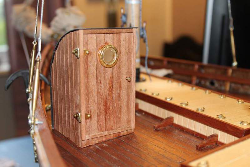 Nedgang til under dekk må man ha, jeg har også lagt inn en lysdiode for natteseiling. Som takpapp har jeg brukt våtslipepapir.