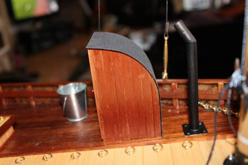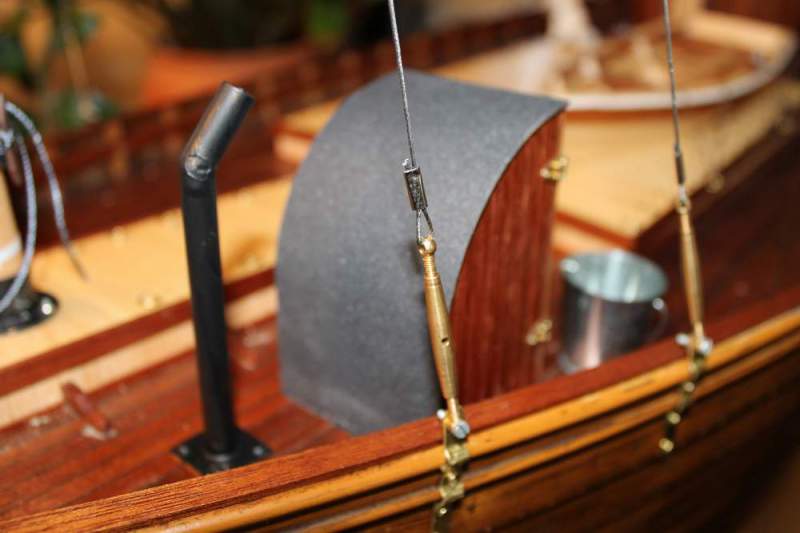 • Det dårlige sommerværet fortsetter, så da blir det gjort litt hver dag. I dag sølvloddet jeg "stålrørs" pipa til byssa av litt messingrør.