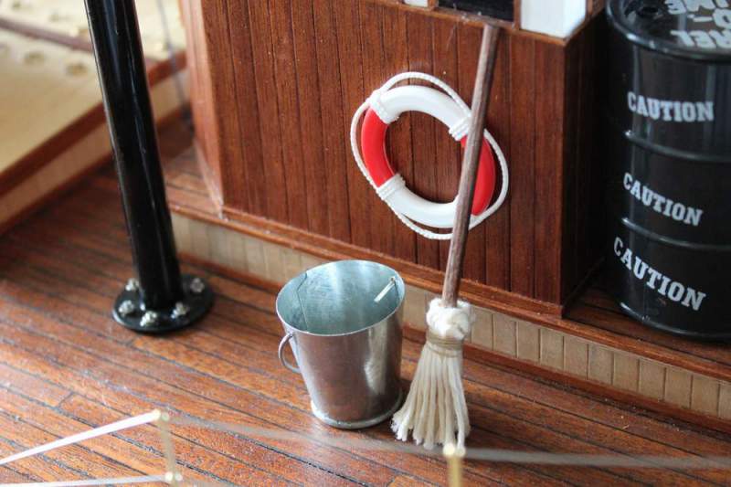 Jeg skal ha inn tåkelur som jeg driver å tester nå (se bildet), har funnet noen fine på youtube som jeg legger på mp3 spilleren. Så leter jeg i leketøysbutikker etter noen mennesker å ha på dekk, også blir det kanskje noen fiskeredskaper og fisk i kassene.