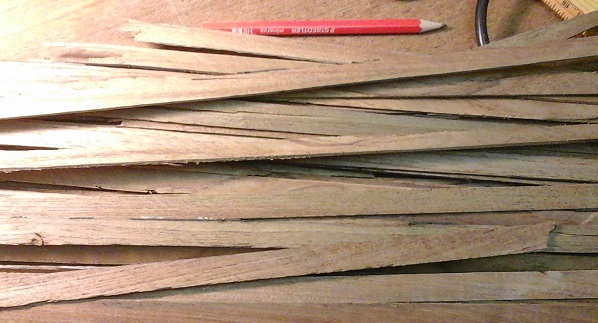 Prøvde å kutte opp noen lister, som skal bli rekke. Problemet er bare at rekka er ikke rett så lista må bøyes. Prøvde først med en list som var tør, men den knakk ganske så fort. Det neste var å legge den i bløt i et par netter, men den knakk den også.