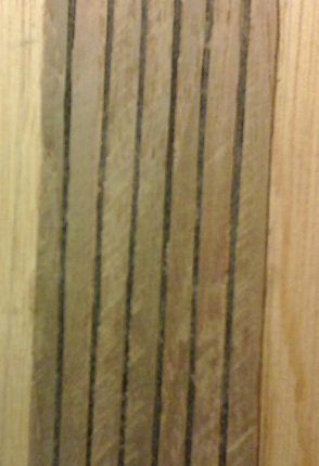 Da var mere teak "søppel" hentet frem for bearbeiding til teak dekk. Tenkte å starte med FB dekket, siden den kun har rette teak staver.