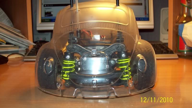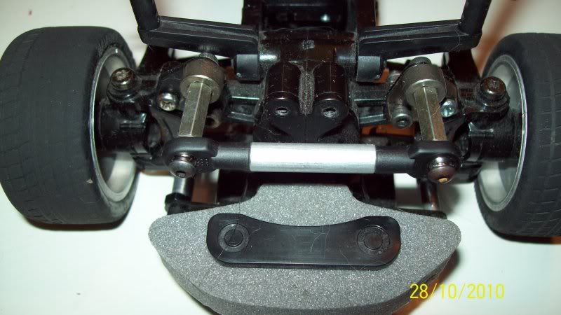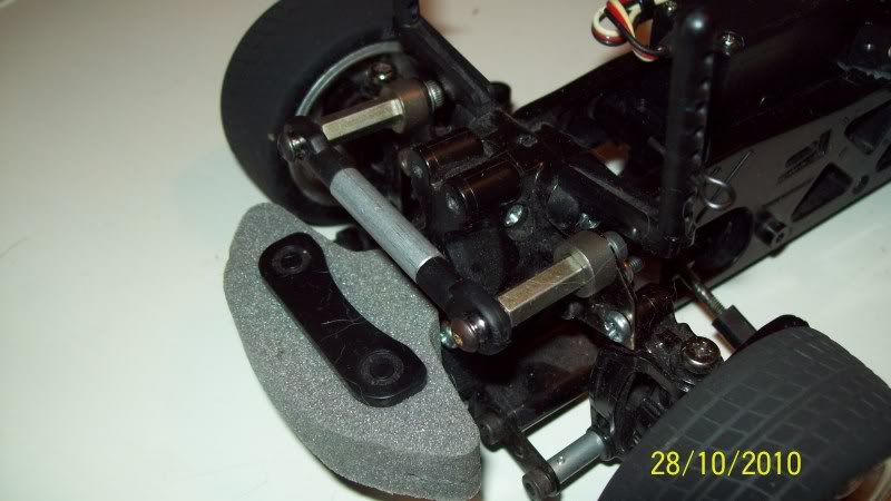 Har nå fått hevet chassiet litt ved hjelp av justerbart stag foran istedenfor demperen..
