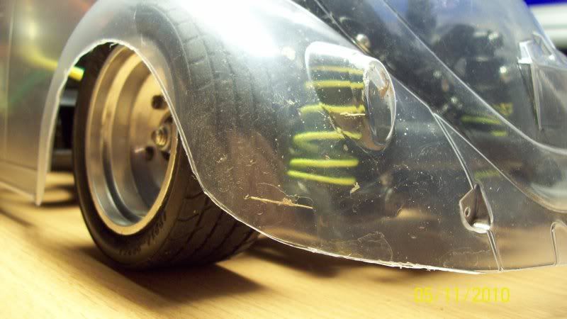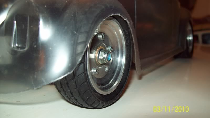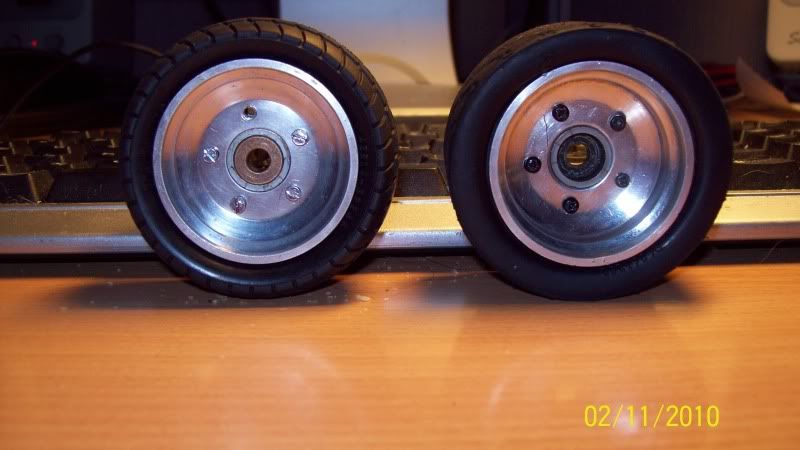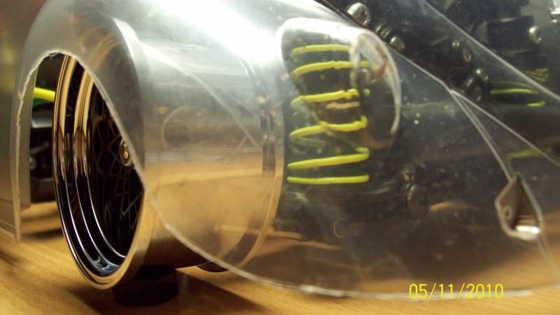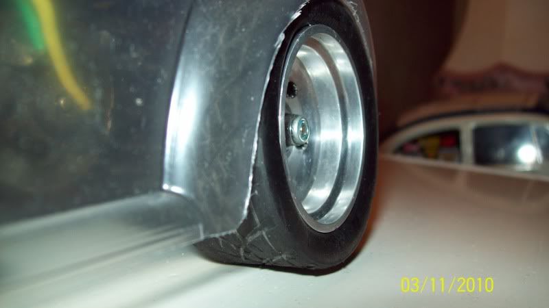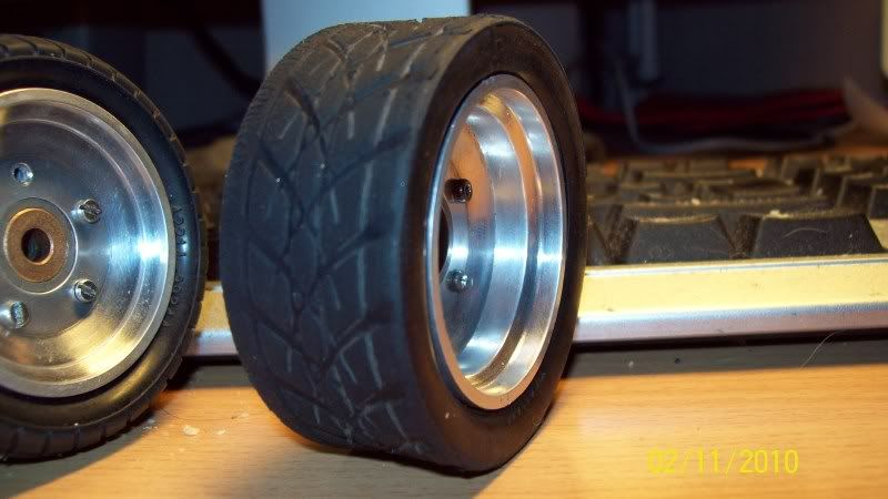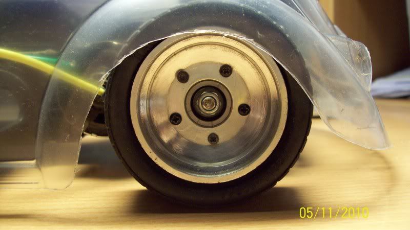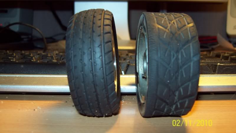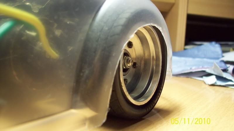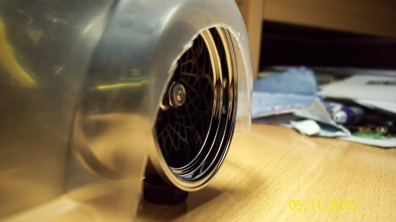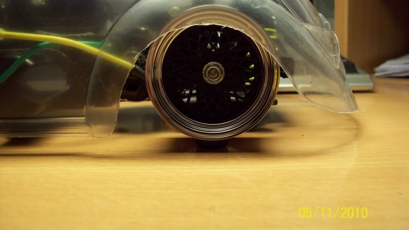Og bare for morro skyld så testet jeg igjen med mine 7mm drifting felger, passer glimrende nå, (men skal ikke bruke disse på dette bygget).