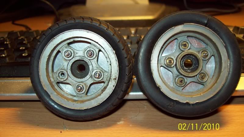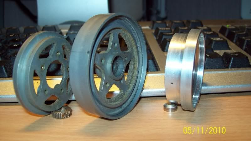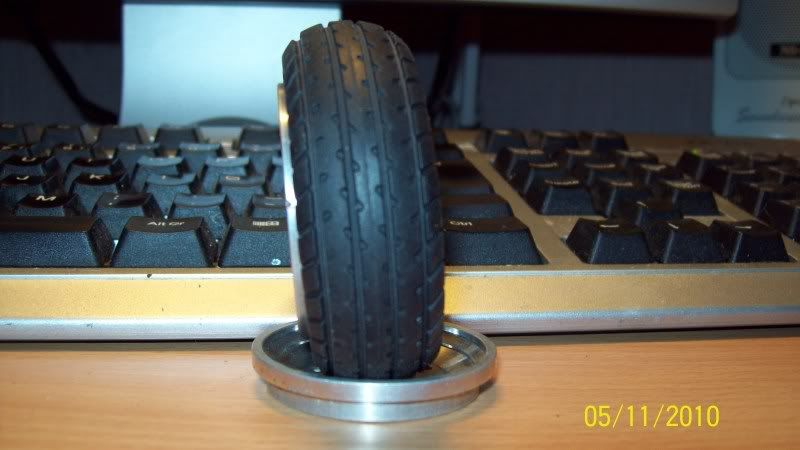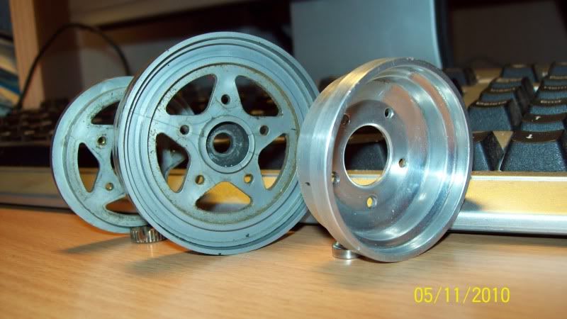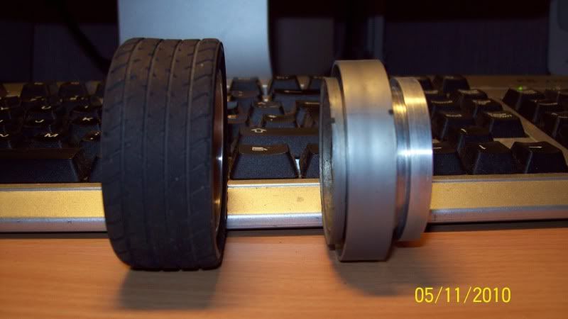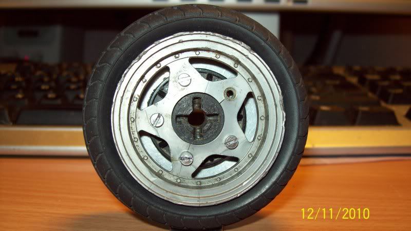 Istedenfor vil jeg bare lage et spor til drivpinnen i en slik Tamiya bronseforing og så epoxi foringen i hullet i felgen, ikke sikkert dette går, en jeg skal iallefall forsøke...