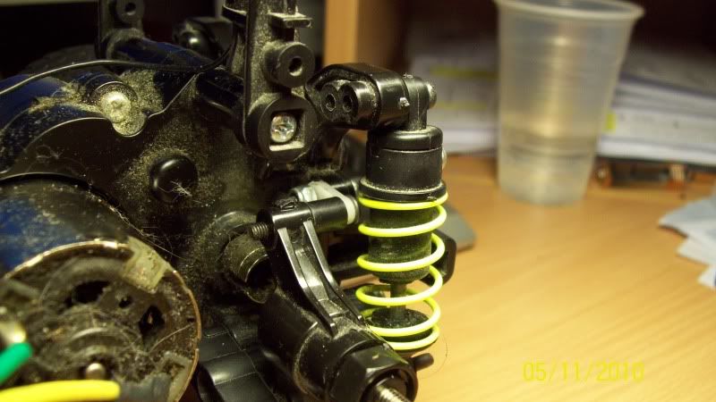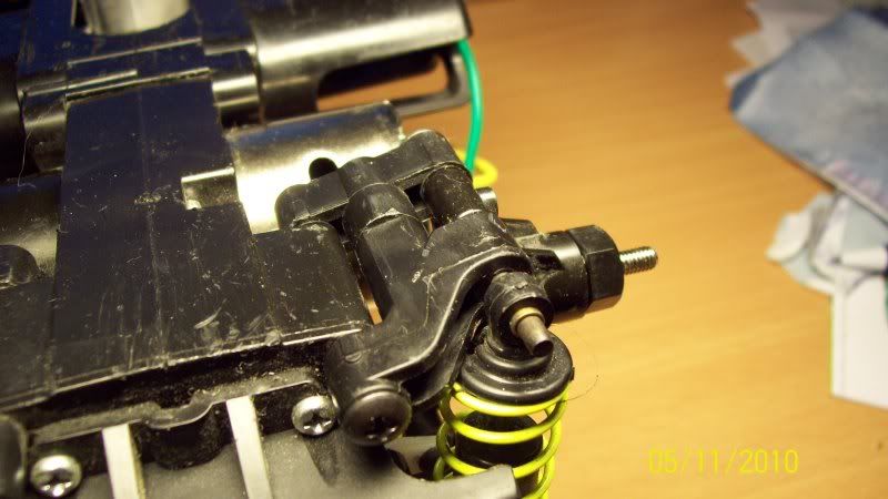 Øverst ser dere mine nå ultra korte bærearmer, brukte bare et servokryss som jeg kappet og pusset litt på.