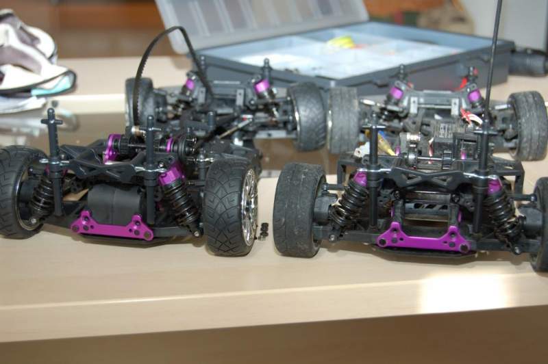 Satte på on-road dekk i sommer og det gikk noe sykt, kjørte på asfalt så var ikke plaget med reima heller. Så istedenfor å kjøpe en ny on-road bil blir det til at jeg bygger en ny inne-drifte-bil. Er storfornøyd med sprinten til mitt bruk, også er det greit å ha 2 like biler med tanke på delelager.
