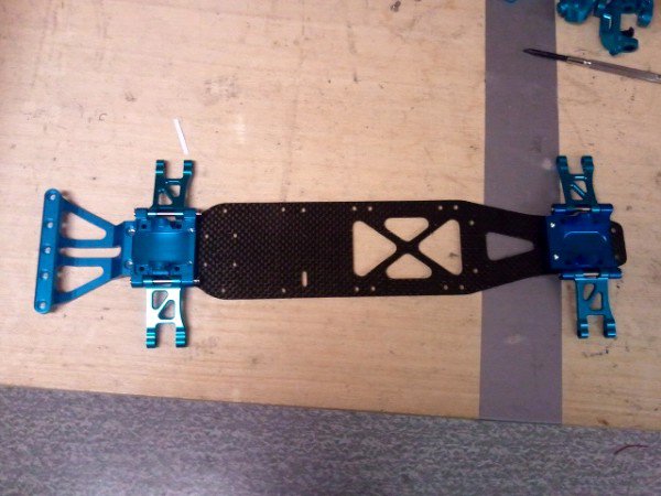 Kom over en gammel Tamiya TA03-F på Ebay for en stund siden, og tenkte skitt au, detta kunne vært artig. Chassis er jo kjent for å være rimelig rått å drifte med, så jeg så fram til å få det. Da det kom, så så det rett og slett...........ja......bæsj ut. Det er helt og alt er i orden, men fyttirakkern å kjedelig å se på. Ikke drifta det spesielt bra heller, så det ble liggende en stund ute i gangen her. Etterhvert ble jeg rett og slett drita lei av å se på det liggende der, og starta å titte rundt etter deler. Jammen fant jeg ikke endel deler her og der, og tanken om å bygge om hele skiten til noe som er både penere og mer funksjonelt begynte å ta form. Vel, for å gjøre en litt lenger historie litt kortere, nå begynner det å komme inn deler her, og jeg er snart på vei til å gjøre om chassiset til en heftigere versjon av seg sjøl, og den prosessen tenkte jeg at jeg skulle dele med dere som ønsker. Her ska det bli mye blå aluminium, nytt setup og høyst sannsynlig ett eller anna f-ord etterhvert som tida går. Er det noen som vil gi tilbakemeldinger etterhvert, så er det (antakelig) bare hyggelig Click image for larger version