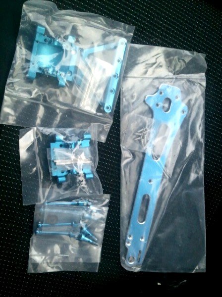 Så var det kommet enda noen deler, idag kom det lower gearbox front and rear, cvd-akslinger og topp-plate. Problemet som jeg nå har blitt klar over, er at siden det er mange forskjellige luringer rundt omkring som fortsatt lager dette, så blir det en ganske stor fargeforskjell, men skitt au, akkurat nå er jeg interressert i å få prøvd ut og teste, se om det faktisk lar seg gjøre detta her, noe jeg er litt usikker på for tiden. Det blir vanskeligere og vanskeligere å finne de delene man trenger, så da kan man kanskje ikke være altfor kresen på alle fargenyanser..