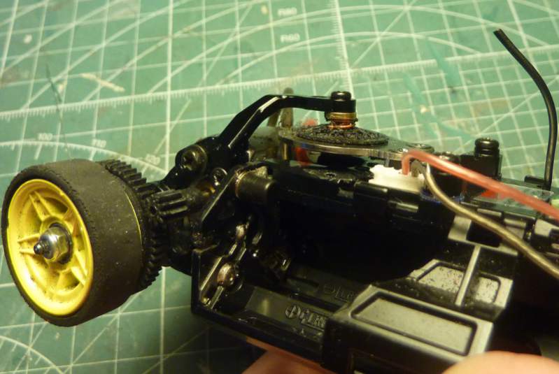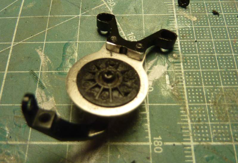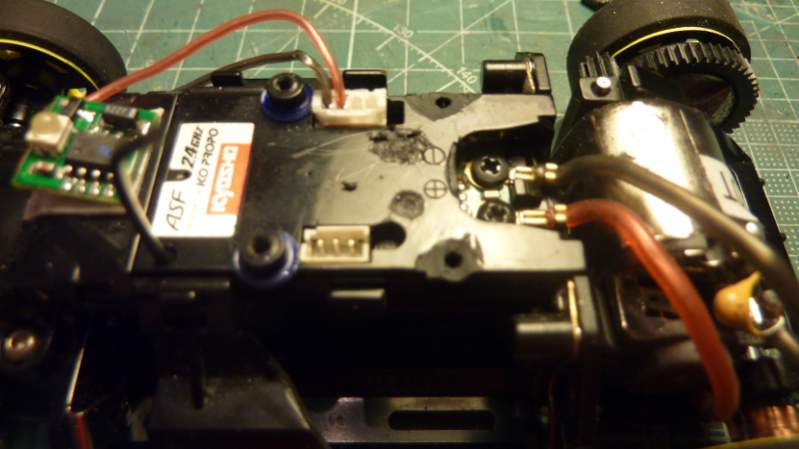 Først fjernet jeg "puppene" på chassiet og den lille plastgreie midt i mellom polene til motoren.