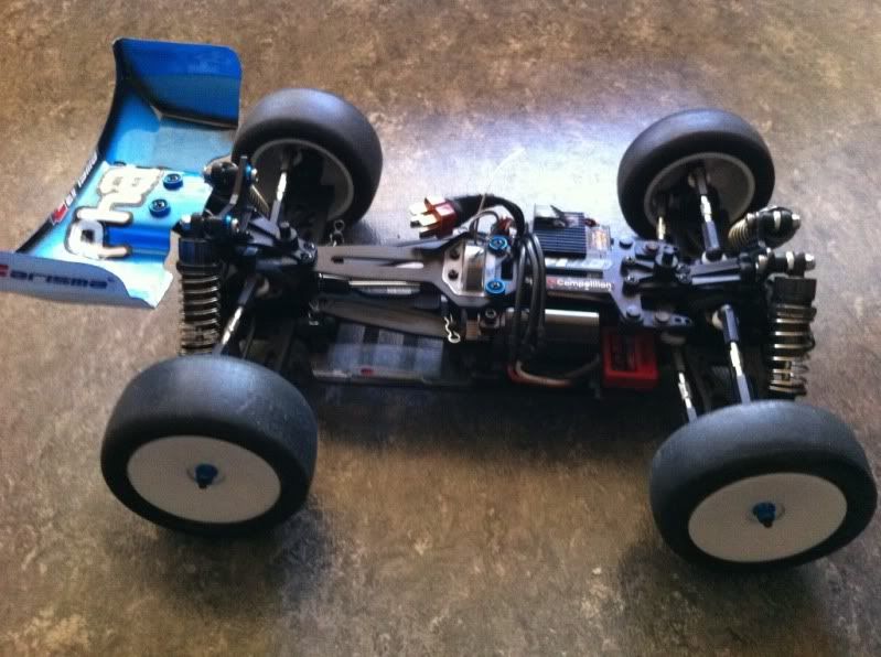 Bilen kommer som RTR med Borstlöst,slipper o 2.4ghz..jag har inte gjort nått med diffarna, utom att dra åt dom lite..sen har ja bara kört..det ja har lagt till extra e Krängare fram o en liten tunn bak. Dämparna e marknadens bästa utan tvekan. Kommer att köra denna hela sommaren ute på Greenhill o lite andra banor, levereras dessutom me Undertray .