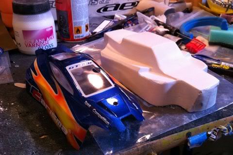 Gjorde mig en egen kaross, tog en del ideér från B44ans Punisher, Tp-Parts "Pusher" lid for GT14B 4wd buggy..
