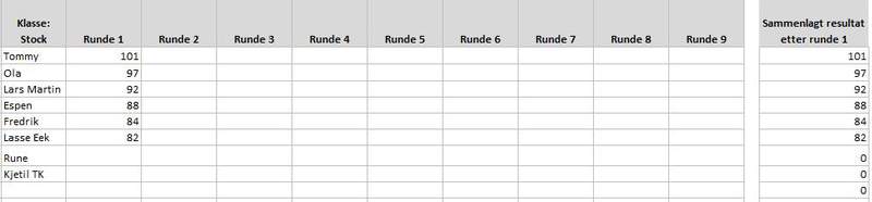 Her kommer litt forsinket poeng og resultat for runde 1 Stock: