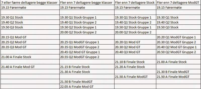Tidsplan er låst! Rekker man ikke starten så får man starte fra sidelinja uten å forstyrre andre førere!