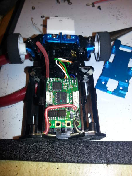 Det du skal gjøre nå, er å fjerne bryteren og bytte det siste servodrevet. Evt også bytte bort sytråd-ledningene mot noe litt vassere.