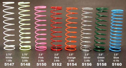 Dermed gikk jeg til innkjøp av 4 stk Losi fjæringer (de helt til høyre i bildet):