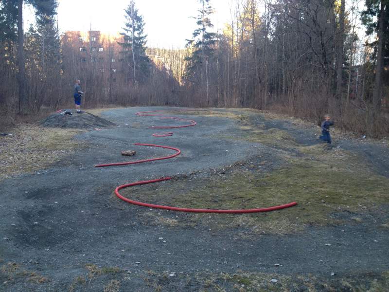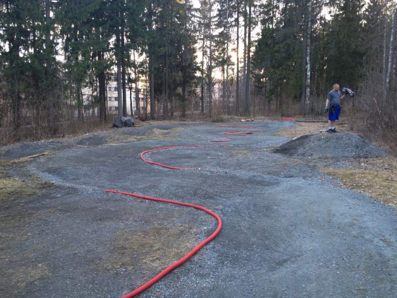 Våren er her, og på tide med en dugnad på banen, denne kan alle bruke, men kun elektro, 1/10...jeg ha r kjørt 1/8 der men den spiser alt for mye av dekket... Må få på plass noe kjøretårn av noe slag, og fylle ut litt masse i noen av svingene, kappe litt av en av kulene, evt fylle igjen mellom 2 kuler for å lage et platåhopp? Vært og raket og formet banen, har også x antall meter med flexi rør i ypperlig størrelse for å markere banen mer...
