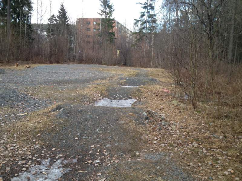 Banen ligger bak blokka v barnehagen, inne i skogholtet