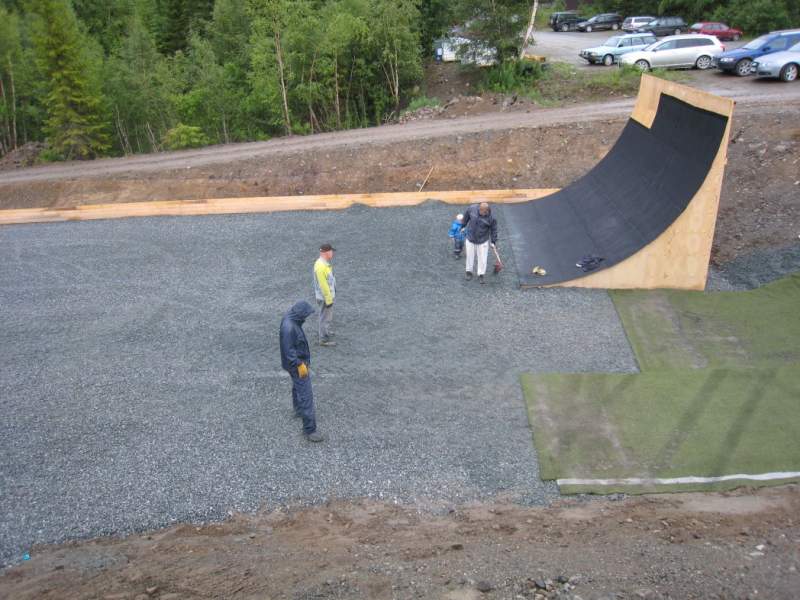 Og det er problemet akkurat nå... Vi vet ikke helt hvordan vi skal få rullene opp over hoppene og bakkene, så vi vurdere å følge trøndernes eksempel og ta bort haugene og lage underlaget flatt og heller bygge hopp i etterkant.