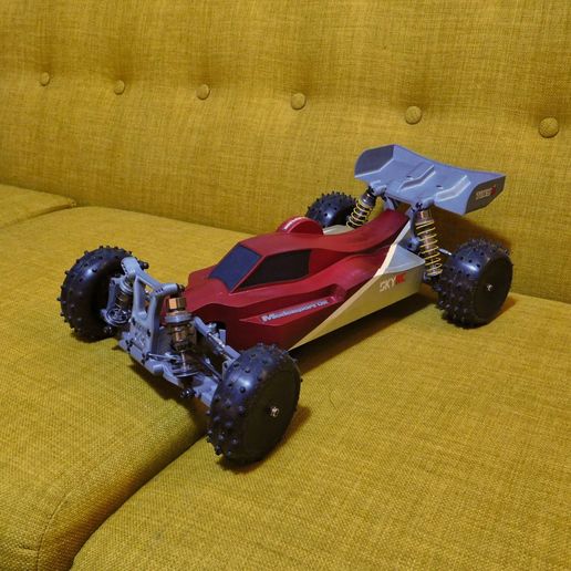 Den har overlegen holdbarhet og kjøreegenskaper sammenlignet med den forrige jeg lagde, Lynx. Karosseriet omslutter chassis slik at det holder seg på plass uten klips eller borrelås, og holder så godt som all skit ute. Målet var en moderne konkurransebuggy. Jeg skal ikke late som at jeg har like mye peiling som ingeniørene til Associated, Xray og Schumacher, men tror ikke det finnes en bedre 3D-printbar RC-bil i dag. Jeg skal filme den når det tørker opp her igjen. Er så vått nå at det bare blir griseri.