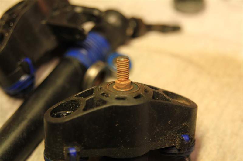 Ser ut som om forrige eier har hatt en kjærlighet for grustak. Måtte ha ut pivot ball i går for å etterstramme litt og tok ut hjul lagrene. De var ikke særlig gode, omtrent umulig å få til å gå rundt. Tror jeg må bytte i alle.