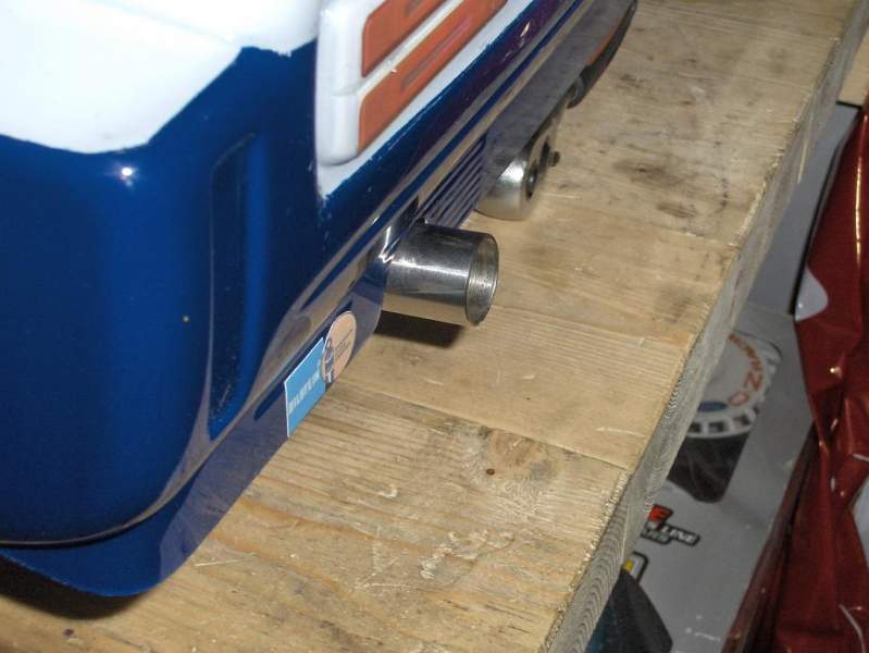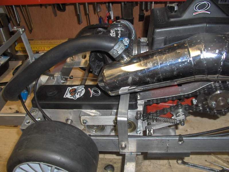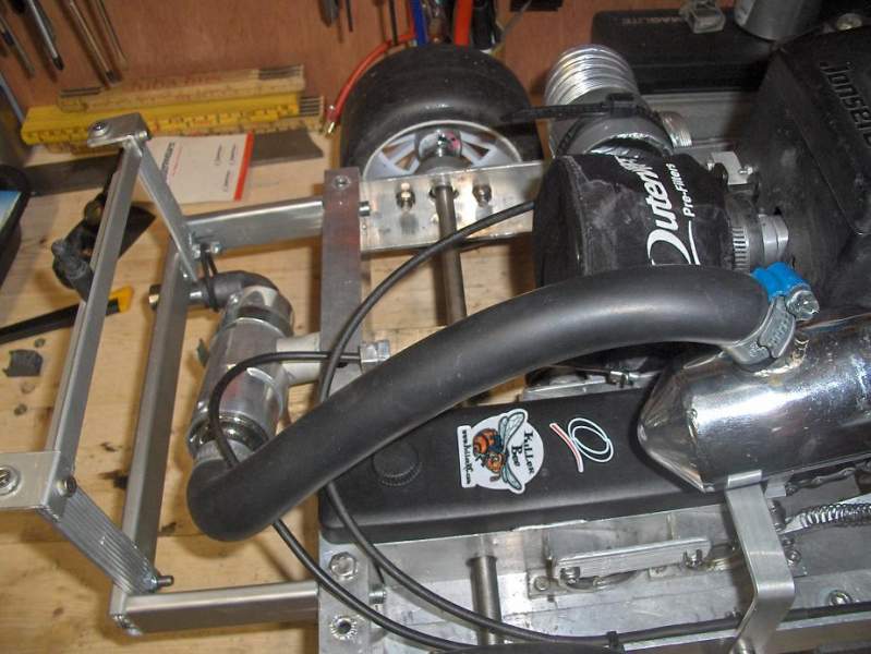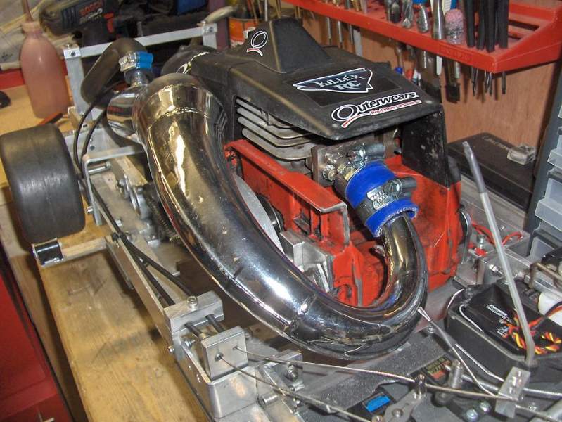 Ein ødelagt killswitch er det som stoppar meg no. Ikkje pokker om den bilen skal kjørast uten. Det vil sei, eg prøvde den på 4,5 meter med grus utenfor verkstaden. Einaste eg fann ut var at den var for tung utveksling på (4:1) men no er det 5:1 så det trur eg blir bedre. Det er ein knall lyd i den, og når den står på ein krakk på tomgang oppå betongdekket så durar det i heile underlaget. Ein tung, grov lyd