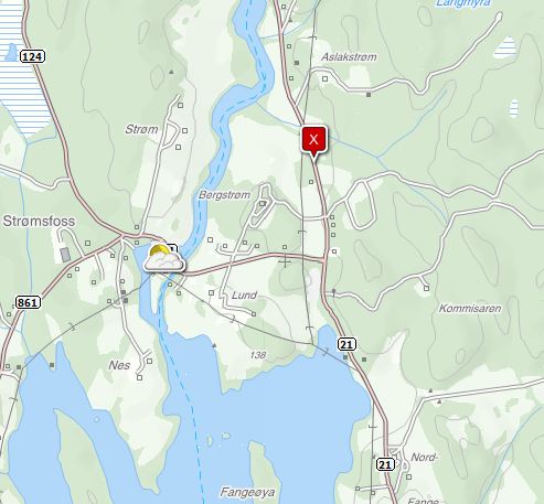 Eller så søker du inn Aremark, og zoomer inn på Strømsfoss via feks 1881.no