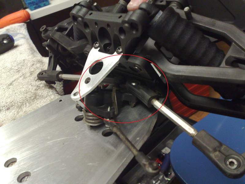Den beten som er i alu,skru den laus litt og så drar du den bolten som går frå chassiplata og opp igjennom radioplata og den alubeten bakover litt,så står ting som det skal vil eg tru.Altså;dra/vipp bakover servoreddaren sånn at den treff med det bakerste holet i alubeten