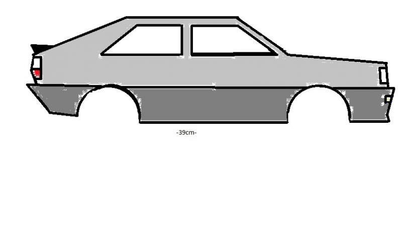 Beklager at jeg satte denne tråden i elektrodelen av forumet. Jeg har tegnet bilen i skala 1:5 og den vil da passe 510mm ikke 535mm. Mulig at stående MCD motor ikke går i høyden men Onroadbil vet jeg vil passe. Lyktene og vinduene blir ikke klistremerker men plexiglass som monteres etter at karosseriet er lakkert. Skal det være så skal det være. Jeg skal lage det så eksklusivt jeg klarer og jeg så på biltema at et karosseri vil komme på ca 300kr å lage. Det blir da salgsprisen. Noe annet en det FG og MCD forlanger for sine bodyshell, ikke sant. Se disse utkastene: