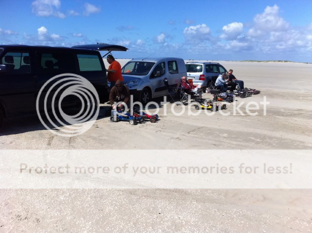 Første kjøredag på stranden.. Her blåste det friskt... Bilene ble satt opp som levegg..