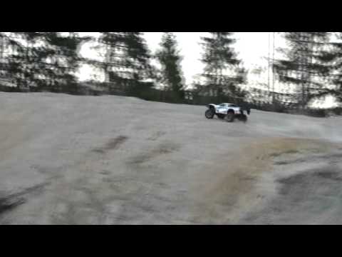 • Testkjøring av "løypa" vi har i sandtaket på Birkeland, her konkurrerer vi med alle typer biler og størrelser, utfordringen er å ikke velte