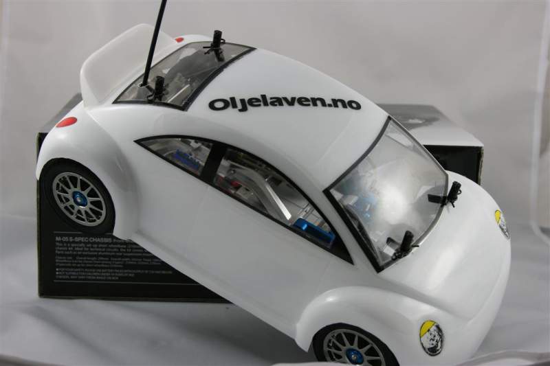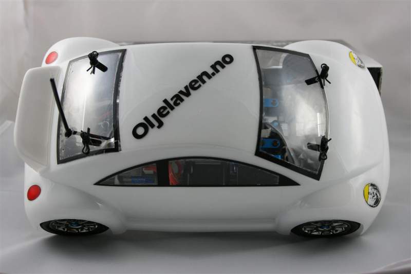 Prøvde med litt forskjellige dekk, og det var stor forskjell. Ellers fungerte bilen veldig bra. Har litt å gå på når det gjelder karosseri-arbeid ser jeg. Fikk ikke laget hullene rett, noe som resulterte i mye dekkskraping i begynnelsen. Satt på litt mindre hjul og kappet mer i skjermene så løste det seg.