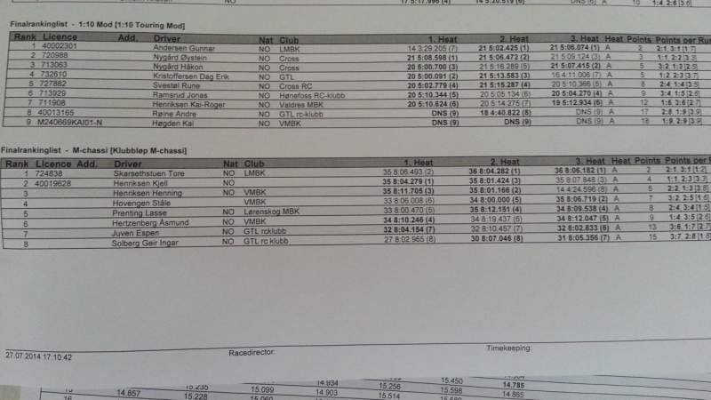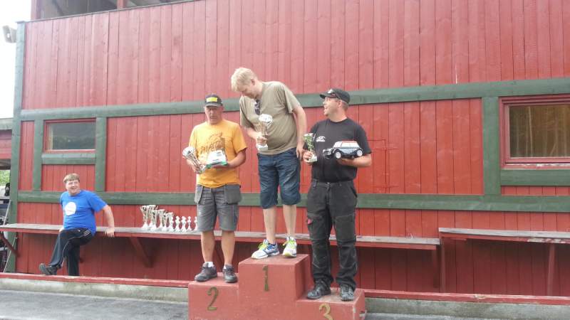 Etter å ha kjørt 576km fra lørdag til søndag, fått 233 runder med M-05 Pro II, byttet diff 2 ganger, skiftet midtre drev i girkassa etter at jeg skulle tøffe meg for Roy, tryna to ganger i to forskjellige trapper, lånt bort nesten alle dekkene mine, testet alle dekkkombinasjoner jeg kunne og begge motorene mine, så endte jeg på en 5. plass.