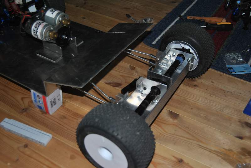 tid for en liten oppdatering, prøvemontert bakaksel, må korte inn staga litt etterhvert, neste på agendaen er å hakke ut hull til mellomaksel og lage avstivninger rundtom.